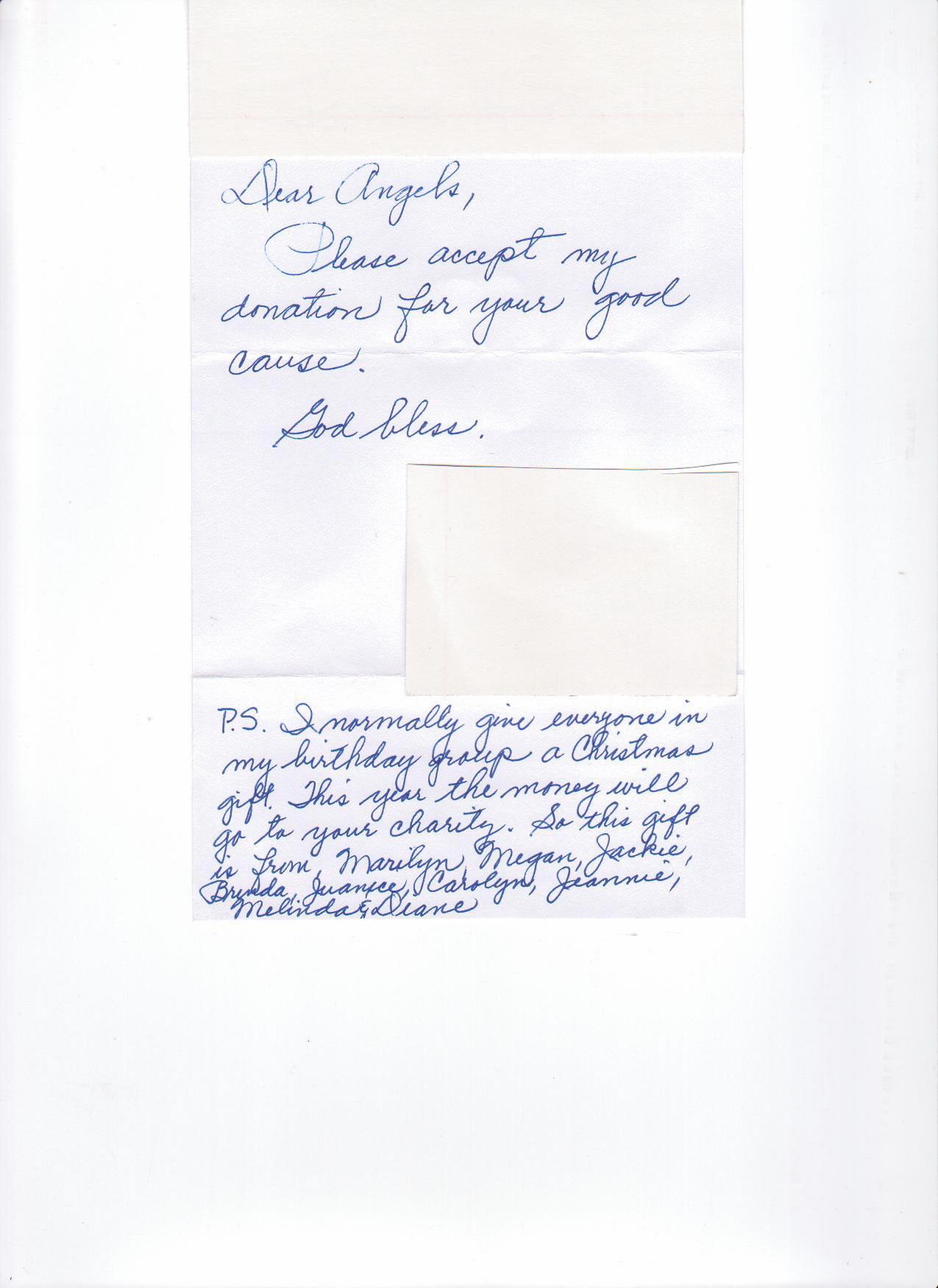 Today I opened the PO Box and there, inside was an envelope with this letter attached. Not only did the letter melt my heart (which isn’t easy in this freezing cold winter!) but there was also a generous donation enclosed. What a beautiful way for this donor to honor the members of her Birthday Group!