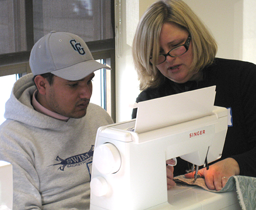 To my mind, offering the tools and the ability to sew seemed like a peaceful way to help make a corner of their transition a little sweeter. So we began. We’ve been talking about this for months but finally, just this week, it came to fruition. The members of the community (about 130 so far) were excited about the idea of learning to sew.